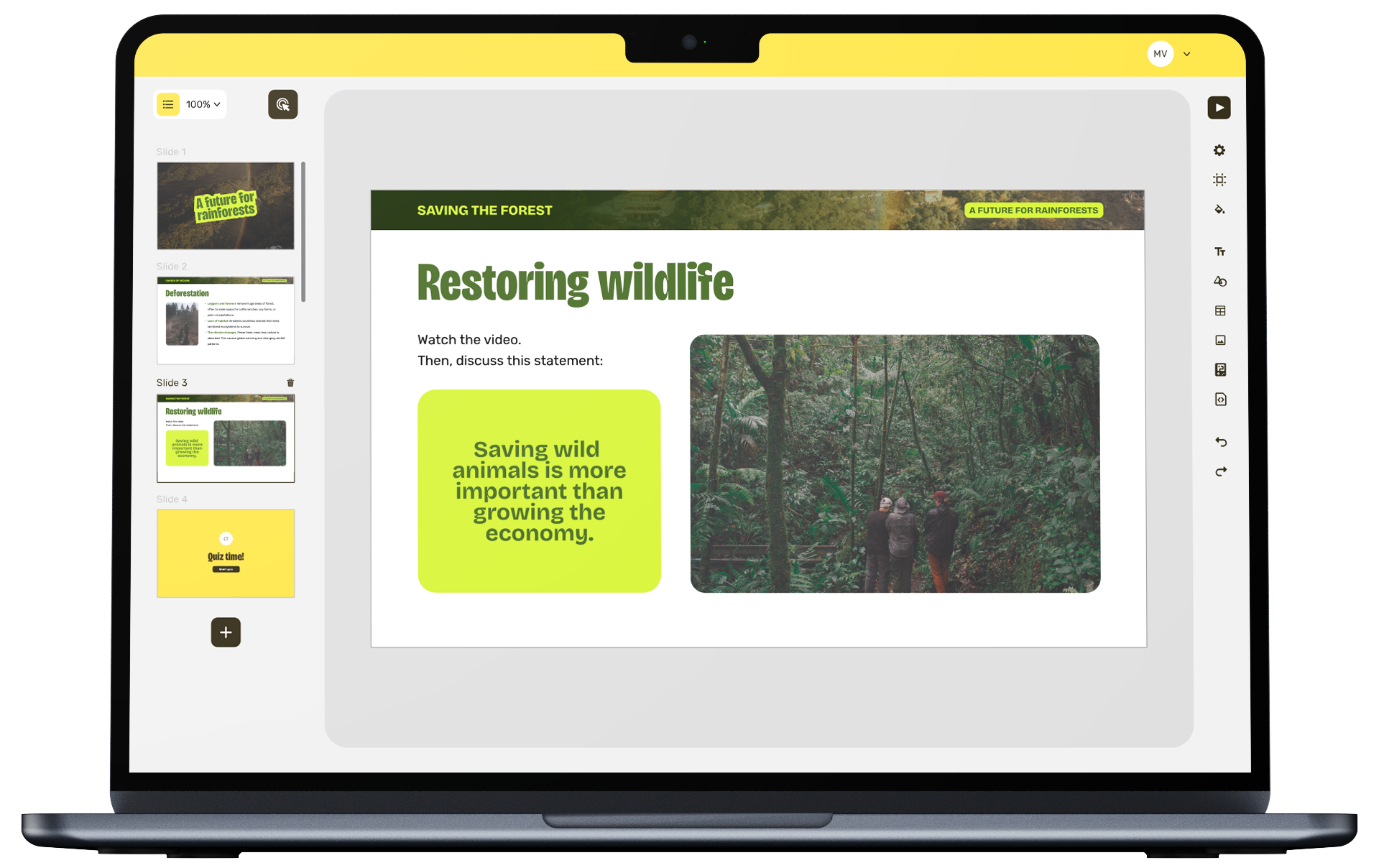 Use our ready-made lessons, adapt them to your needs, or build your own from scratch using our templates. Add quizzes and polls as you go, then finish the lesson with a game to check understanding and keep motivation high.